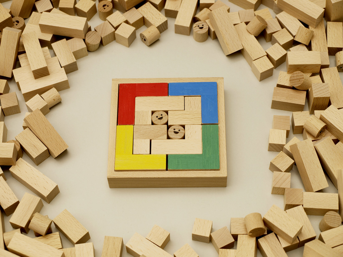 カットされた素地に彩色して、自分だけの積み木を作りましょう。