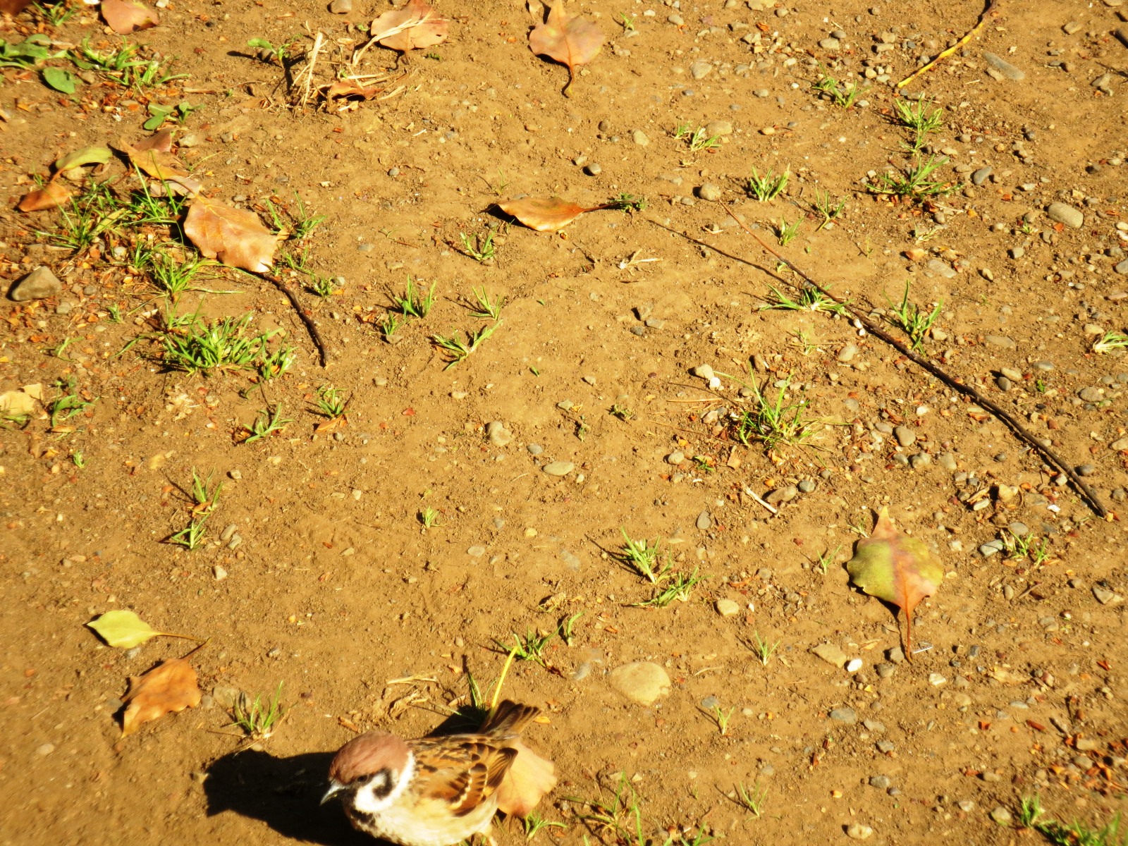 ベンチの近くにやってきた雀に