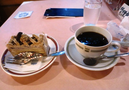 盛り場にひっそり。好きな喫茶店の支店。ケーキセット、飲み物おかわり自由。特製カップに老舗を窺わせます。