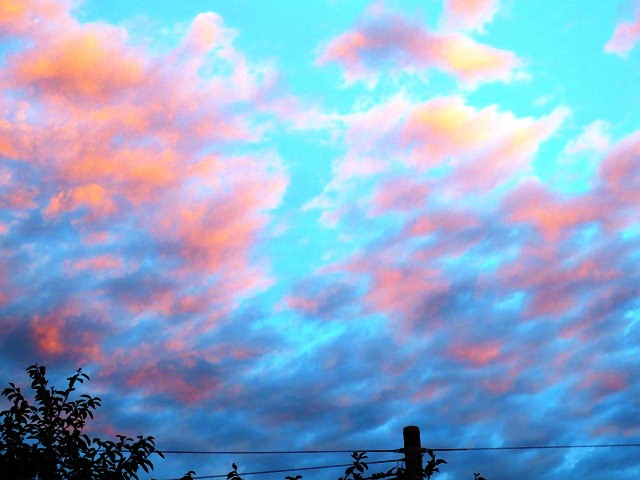 自宅のベランダから。空に描かれたメッセージに見とれる。