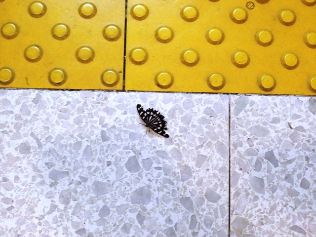 地下鉄の季節外れの蝶。
