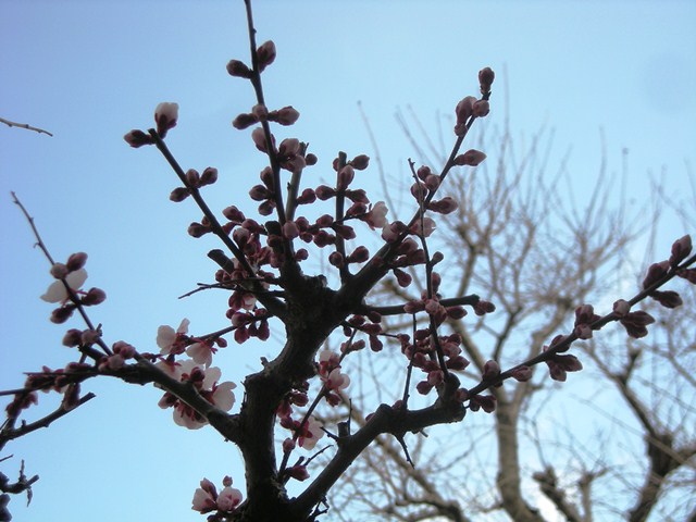杏のつぼみが開きそうです。