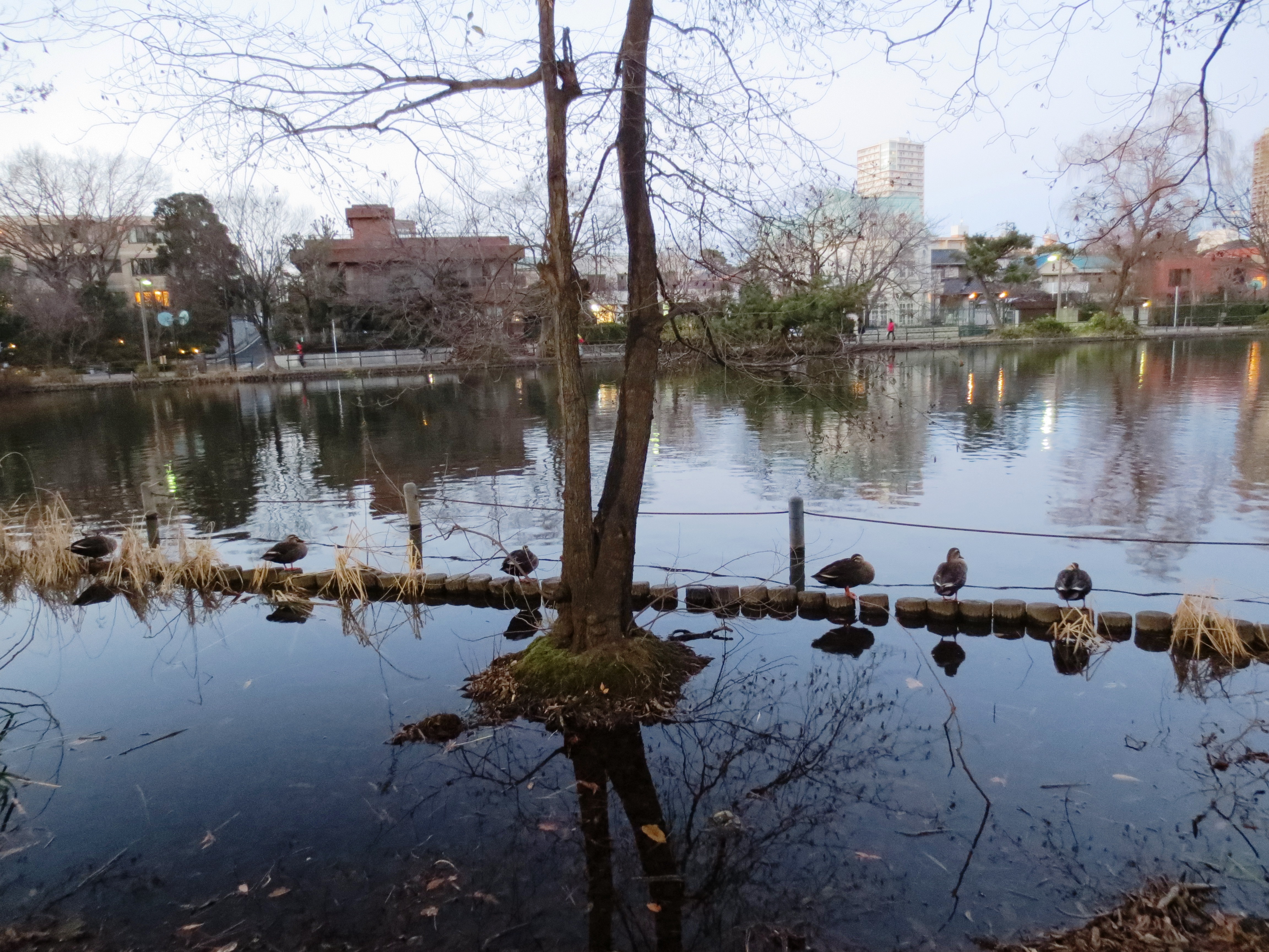 鴨たち、立並び、眠りの準備。