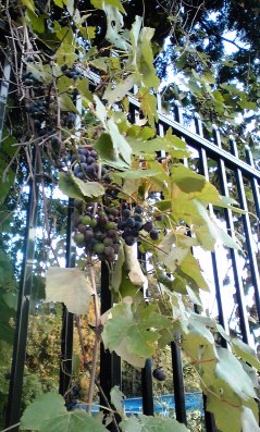 道すがら、葡萄がフェンスにからんで実っているのを発見しました。