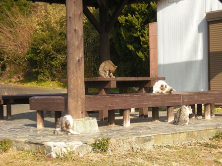 ★逢ケ浜海岸の毛づくろいする猫の団体さん。