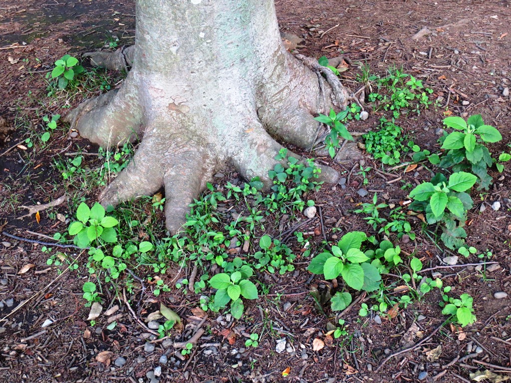 怪獣の足下に、賑やかに雑草が。なんて可愛らしいこと !