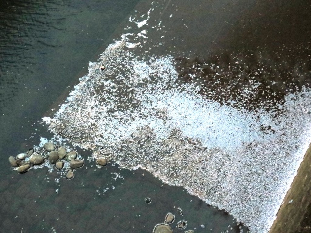 コサギが来ていた。橋のこちら、西側にいつも一羽で遊んでいるのに、