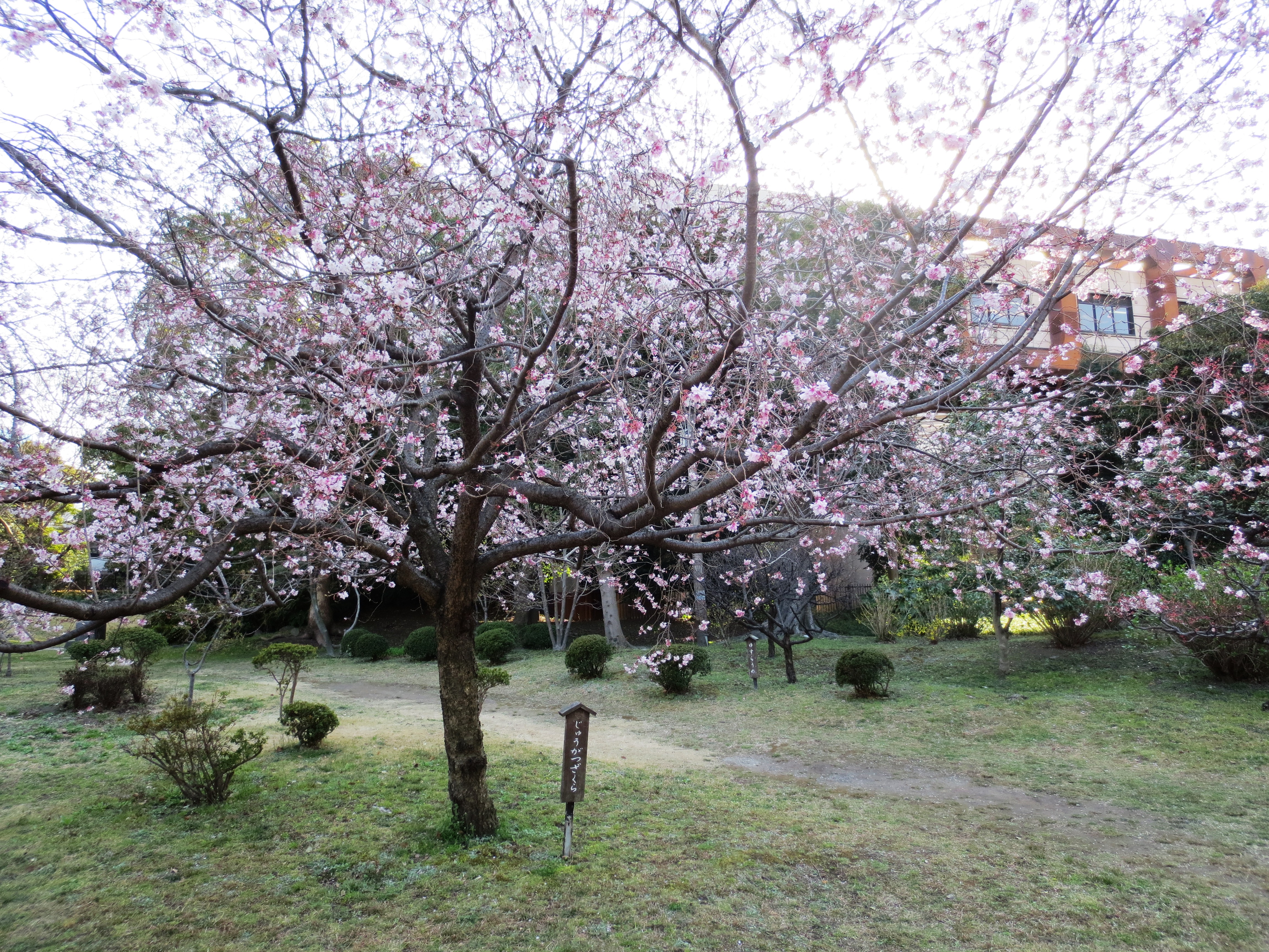 「じゅうがつさくら」という名前でした。夜のテレビでも都内で桜開花というニュース。